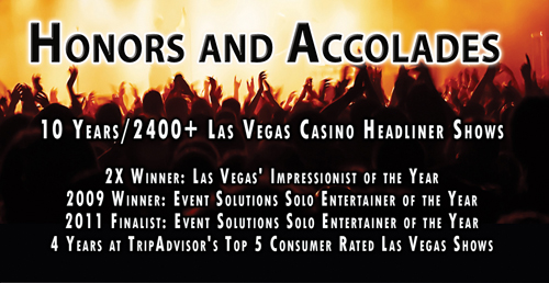 Whether it’s an Association Function, Corporate Party Entertainment, Meeting, Gala, Fundraiser, Closing Session, Special Event Sales Meeting, Opening Session, Employee Appreciation Event, Company Holiday Party, Customer Appreciation Event; Incentive program, After-Dinner Entertainment, Corporate Meeting, Awards Banquet, Convention, or This multi-award winning comedian, impersonator, and multi singing impressionist will delight audiences of all ages. Clean comedy, variety, and top 40 music with funny song parodies and more kept this family friendly comedian and entertainer headlining in Las Vegas Casino showrooms for over 10 years.